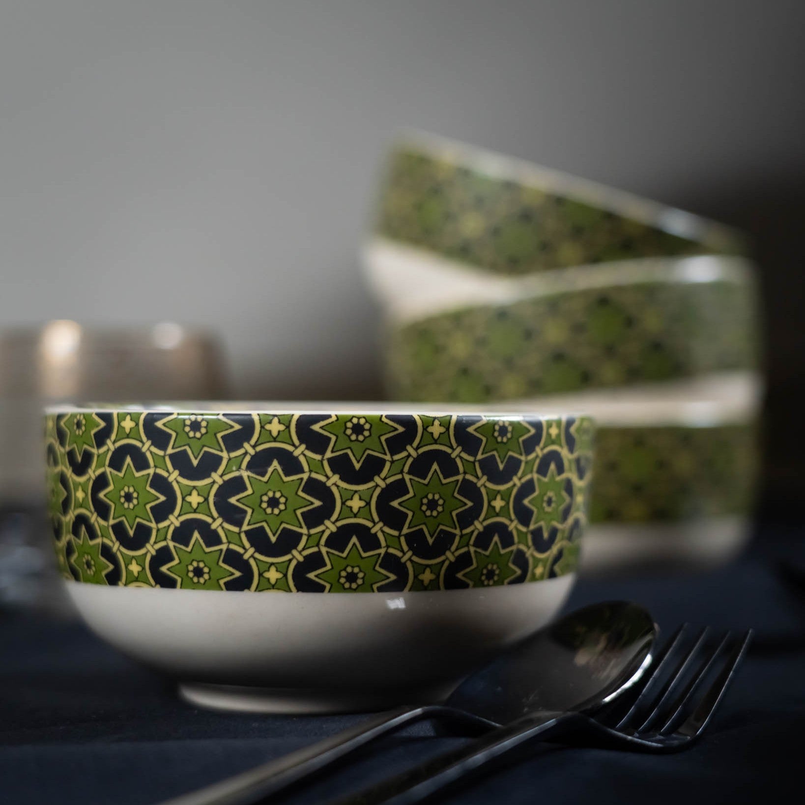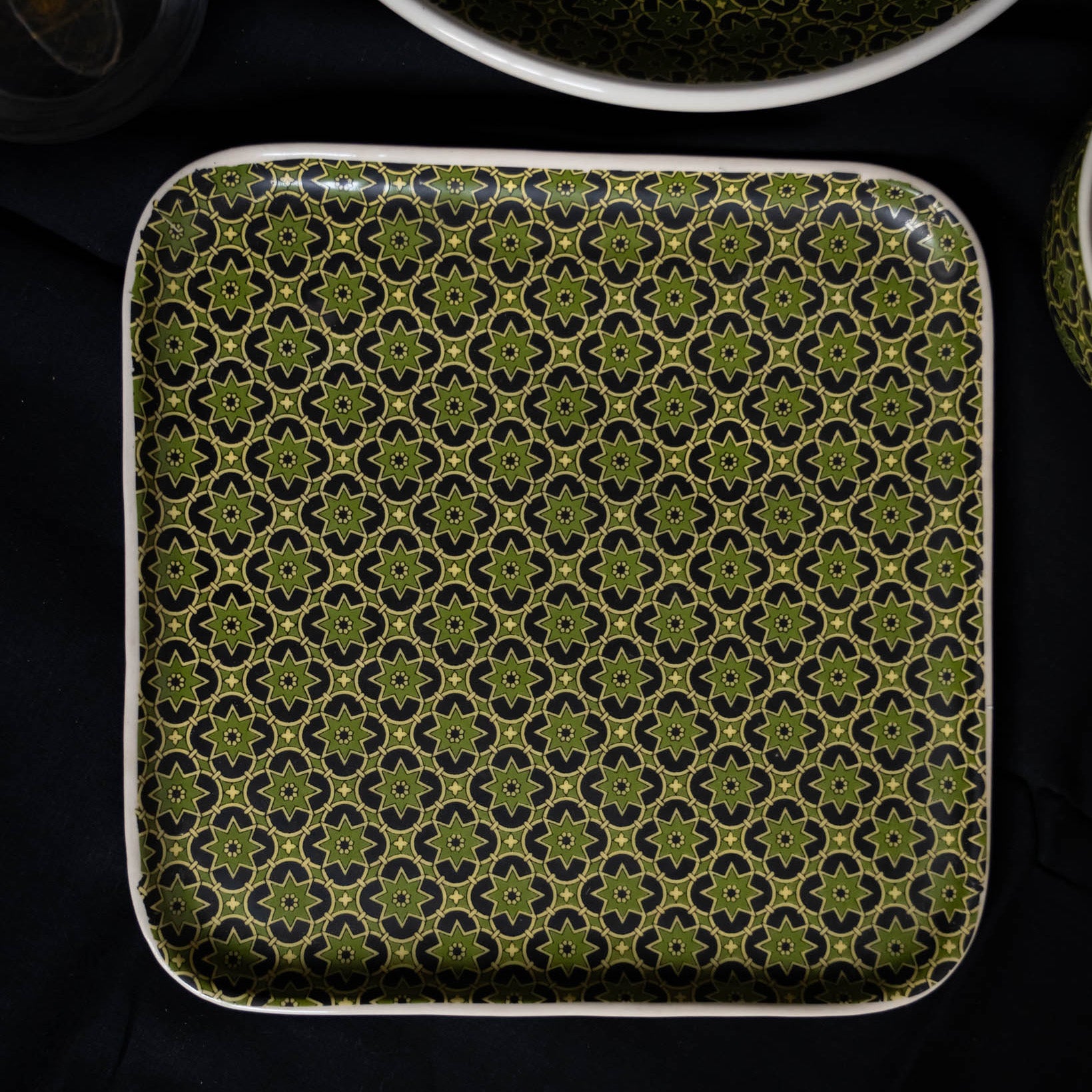 Aneeza takes its name from a flourishing valley, a place shaped by patience, balance, and quiet abundance. This idea flows through the dinner set in its measured geometric patterns, inspired by fields, paths, and cultivated land seen from above. Crafted from premium non-porous ceramic, each piece is durable, lead-free, and food-safe. Designed to retain warmth and withstand daily use, the set brings a sense of grounded beauty to everyday meals, making the table feel calm, complete, and thoughtfully nurtured.
