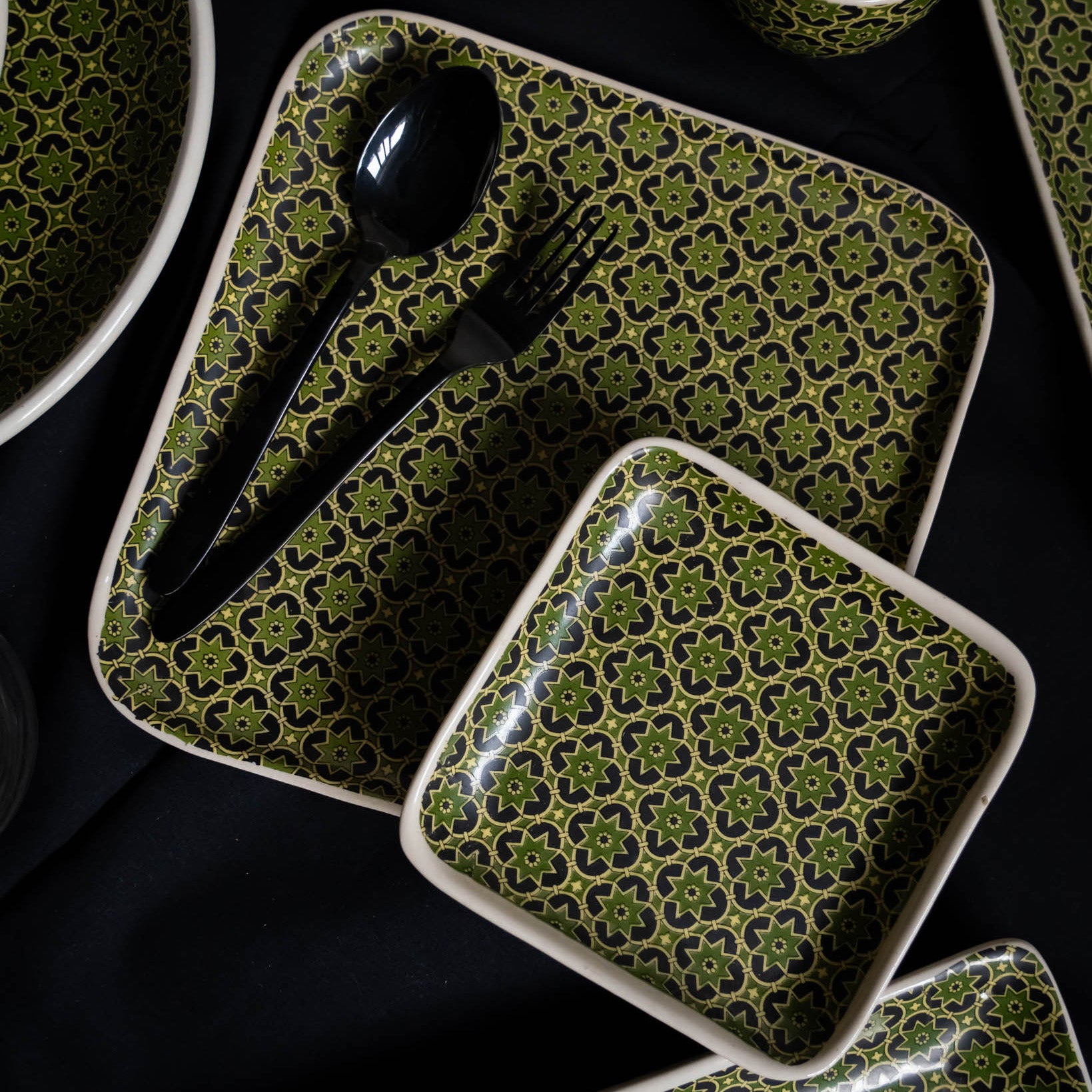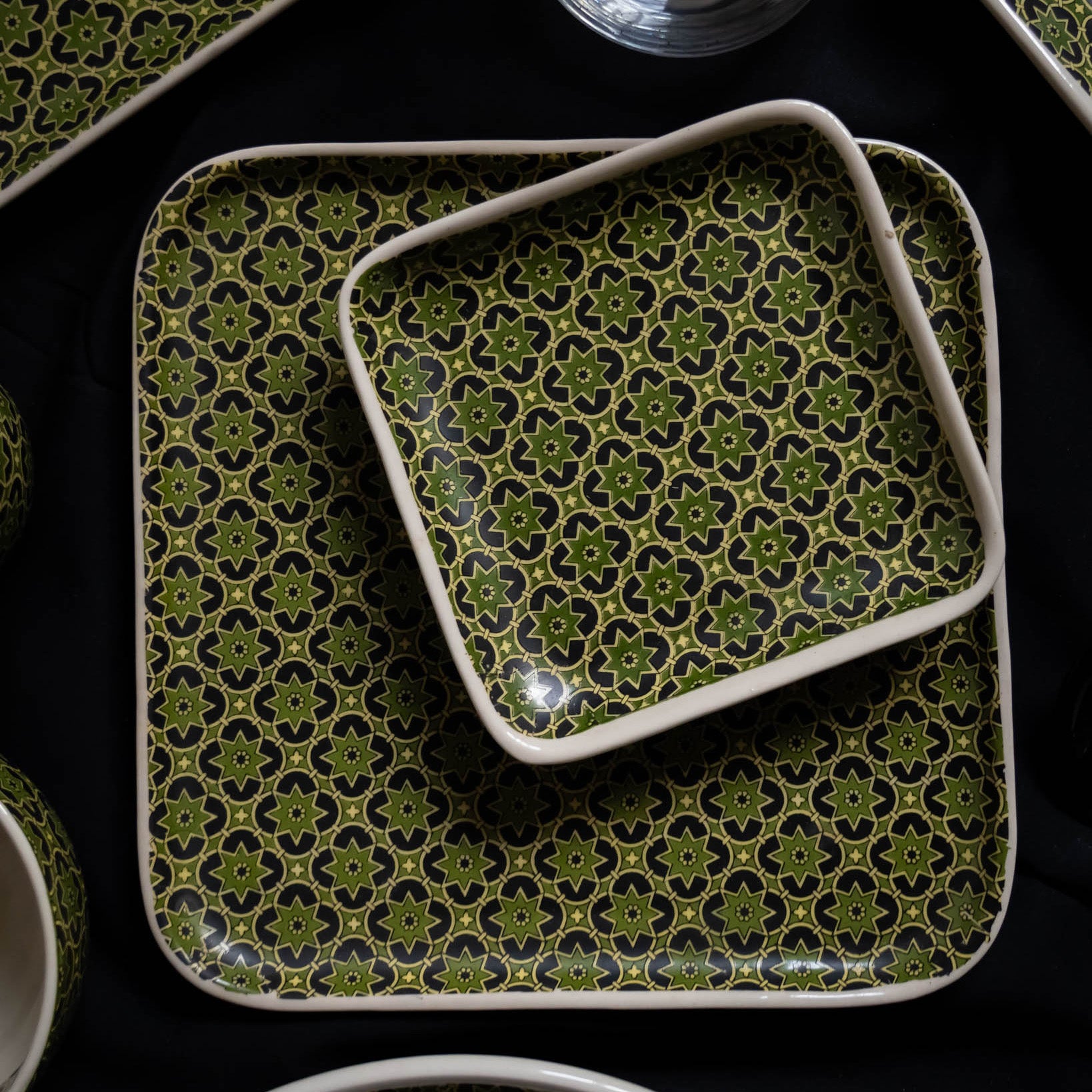 Made for slow mornings and shared bites, Aneeza small platters are inspired by the idea of a flourishing valley where abundance feels gentle and unforced. The geometric pattern adds quiet rhythm, letting pastries, fruits, and light meals shine. Crafted from premium non-porous ceramic, they are durable, food-safe, and lead-free. Their compact size is perfect for brunch spreads, desserts, and everyday serving, while the ceramic body helps keep food warm longer.