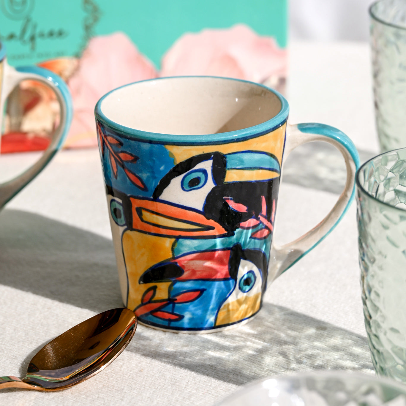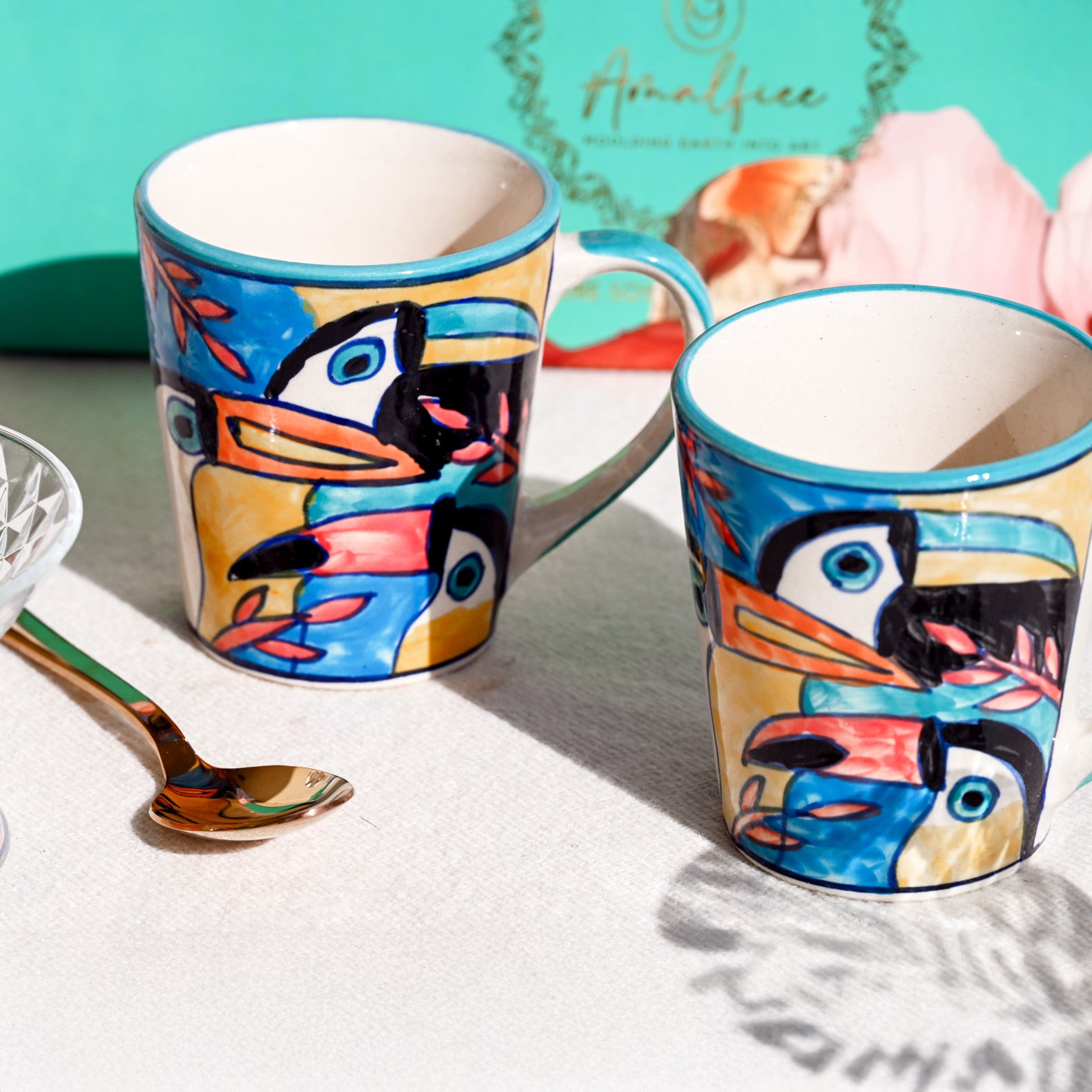 A festive keepsake crafted for those who cherish thoughtful luxury. Inside, you’ll find beautifully crafted ceramic mugs paired with a single gold-finish spoon, creating a quiet sense of luxury without being loud. The mugs have a smooth, comforting weight, perfect for slow mornings or relaxed evening sips. The set is packed securely in a beautiful gift box that looks thoughtful and premium. It’s a reliable, impressive choice for festive gifting, celebrations, or meaningful everyday gestures in every single moment.