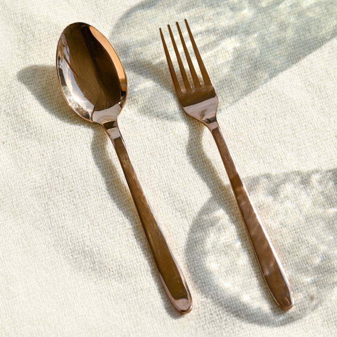 Contains 2 of each : Stainless steel, Gold plated Spoon and Fork