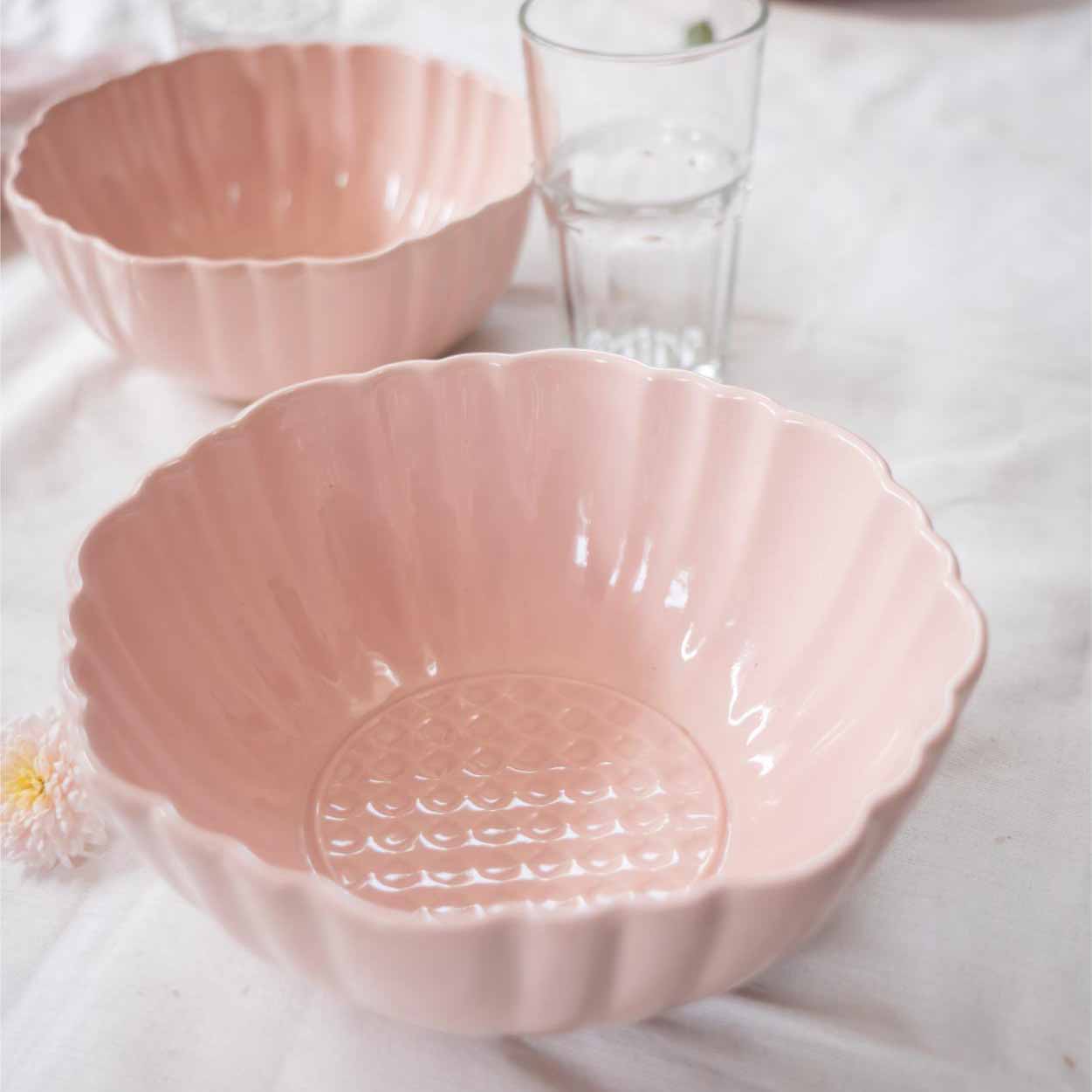 Blush Pink Artisanal Ceramic Serving Bowl Set of 2