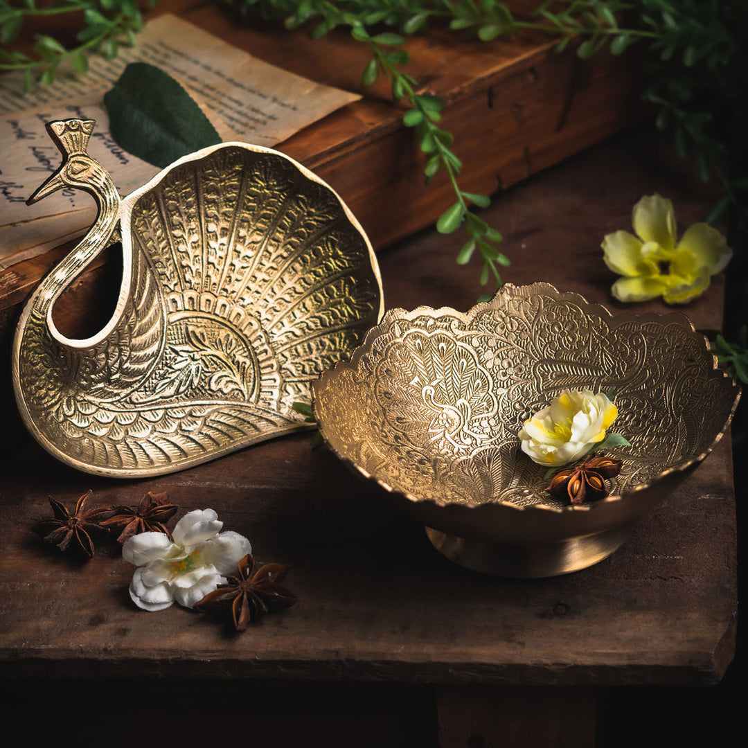 Saubhagya Brass Serving Tray and Large Serving Bowl