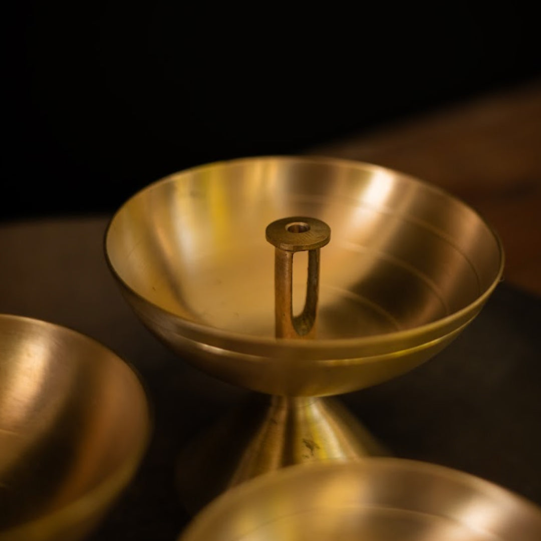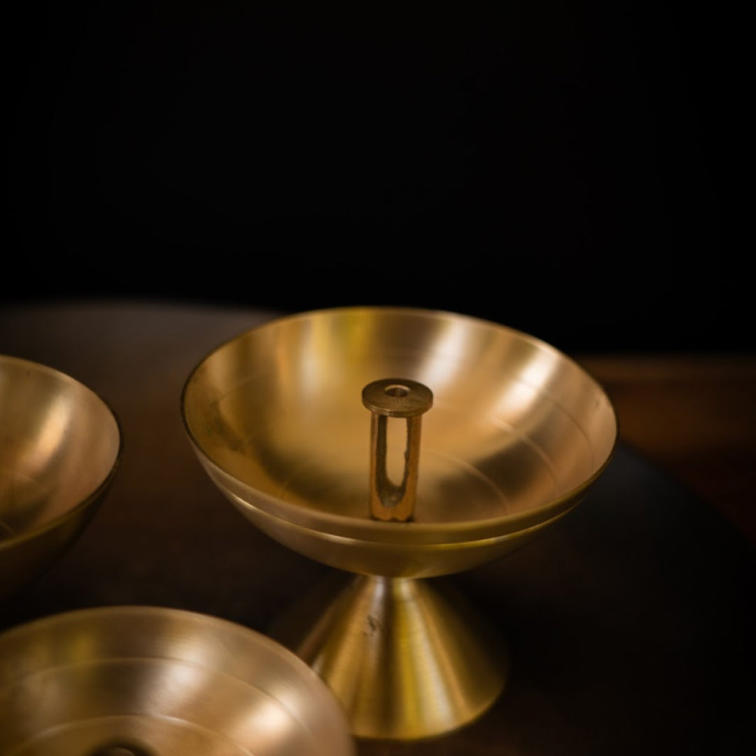 Saubhgaya brass diya with gold finish set of 6