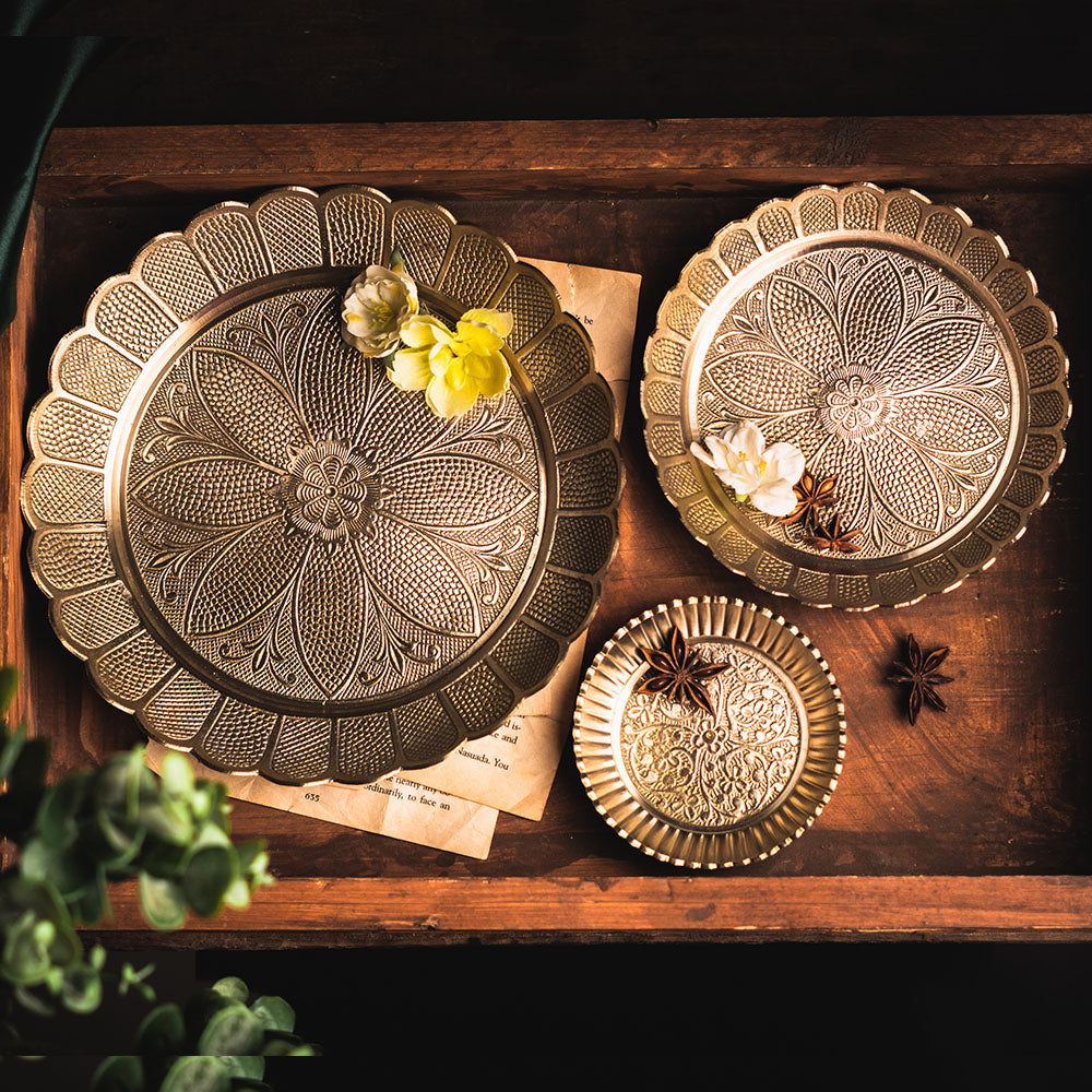 Saubhagya Brass Serving Plates with Gold Finish Set of 3