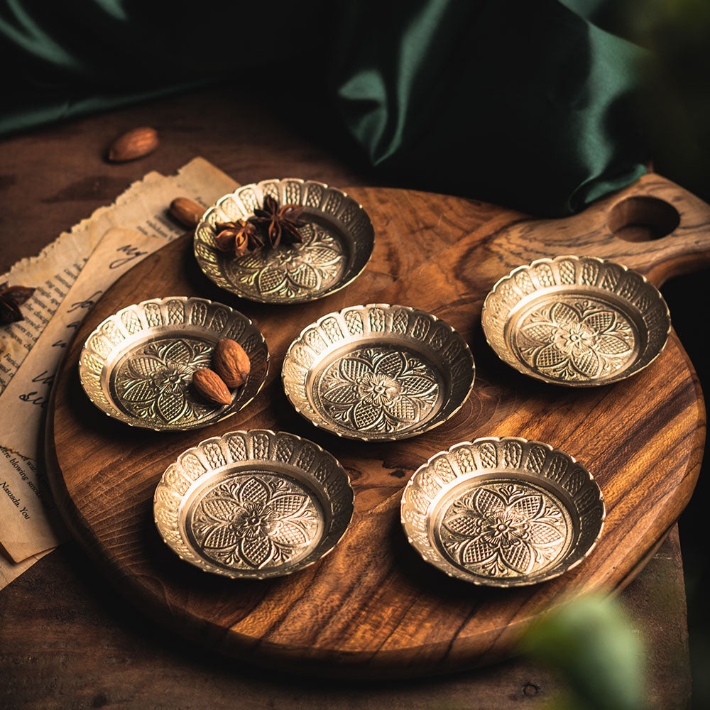 Saubhagya Brass Small Plates with Gold Finish Sets